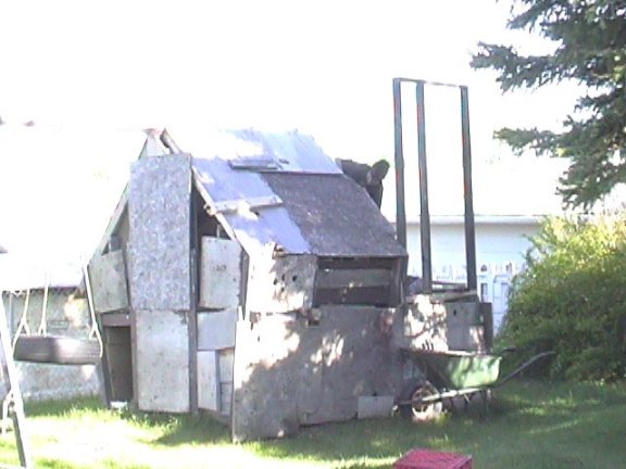 My youngest son Phillipe wants to be a house builder some day... He just might get there... If anyone in the alley throws out as much as a 3x4 or a chunk of plywood, you can be sure it well land up in my back yard. Them kids sure make a mess, things are always messy, but I rather it this way then them being restricted to having no interests in anything and getting in trouble out on the streets... I feel sorry for kids that live in a apartment building and don't have the room to explore there talents...