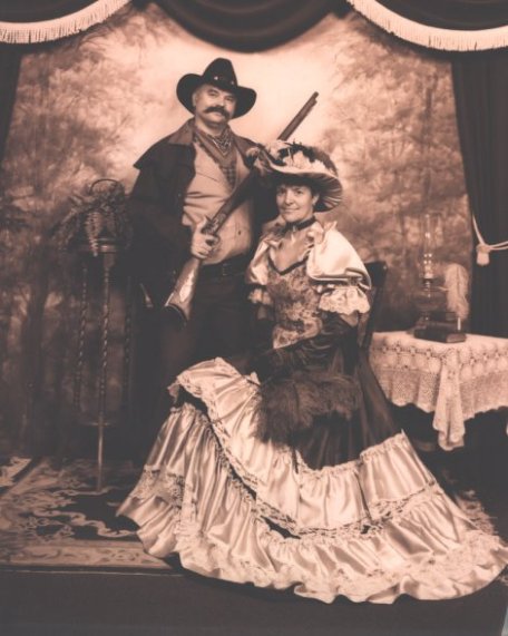 We got this picture taken on our 20'th anniversary... and big that iron in my hands, I reckon I should let you know I'm able to shoot pretty straight.... so best you don't try taking my little lady away from me! (all in fun) Heh heh heh! (by the way, the mustash is real)