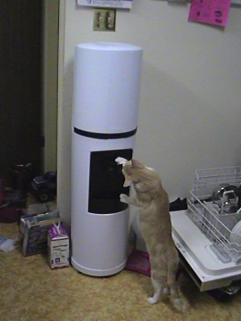 After getting a bit thirsty our cat figgered out where we all got our drinking water from, and he decided that he too could have a drink... The kids named this tom cat Springer...