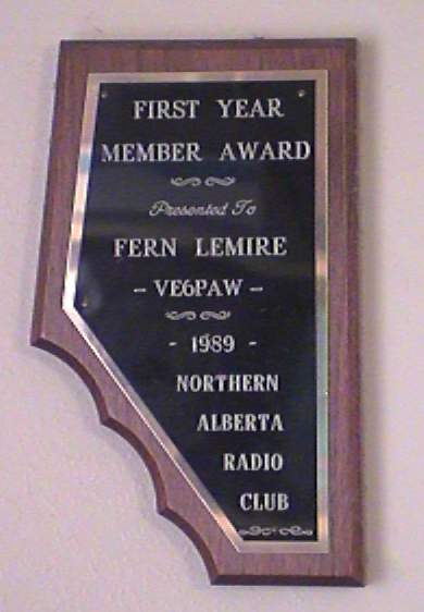 When I use to be with NARC, Edmonton's ham club, I received this award the first year I was lic... Was a pretty nice feeling, I was pretty active both on HF and VHF and really enjoying the hobby... It still hangs up on the wall's of the ham shack here...
