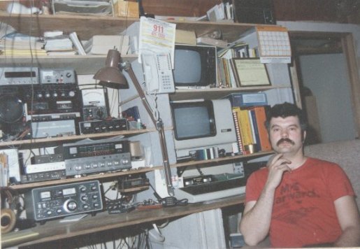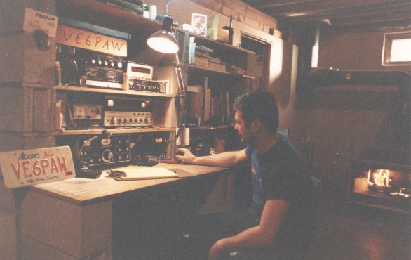 My ham shack down stairs when I first started up in Ham radio... I got my lic on Nov 28, 1988, and got my advance on Dec 20, 1999 with Morse code at 15 words per minunit. (it's much easyer to get a ham lic now) The crackle of the wood burning in the stove was relaxing... but later when Gisele got her ham lic, I moved the station upstairs...